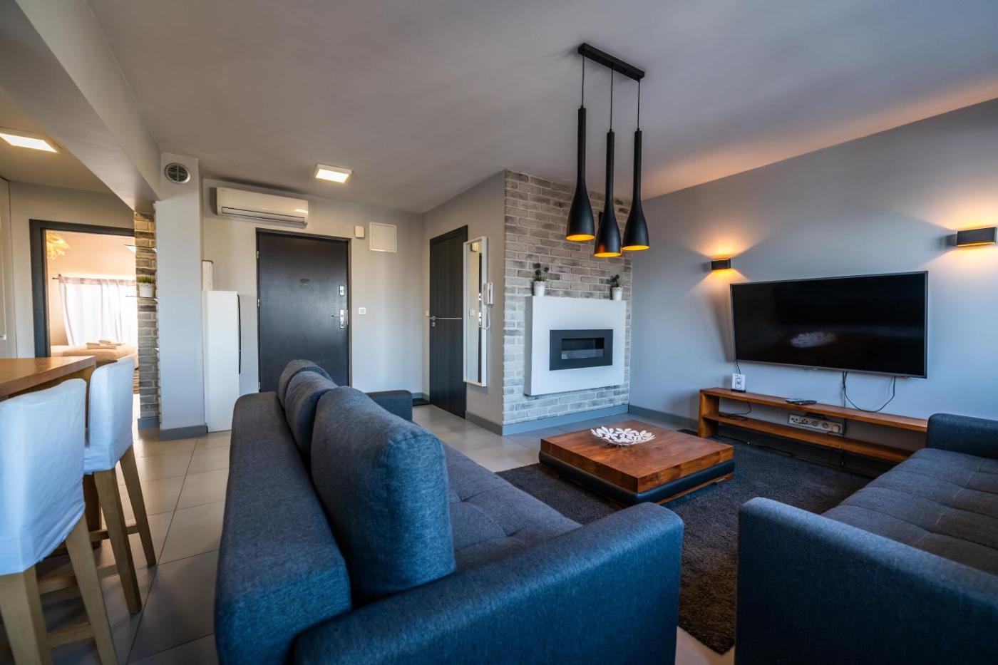 Apartament z 1 sypialnią. This apartment features a fireplace. This apartment features 1 living room, 1 separate bedroom and 1 bathroom with a shower and free toiletries. In the well-fitted kitchen, guests will find a stovetop, a refrigerator, a dishwasher and an oven. The air-conditioned apartment features a flat-screen TV, a washing machine, a coffee machine and a wardrobe. The unit has 3 beds. Apartament - 5 osobowy. Powierzchnia pokoju ok.: 54 mkw.