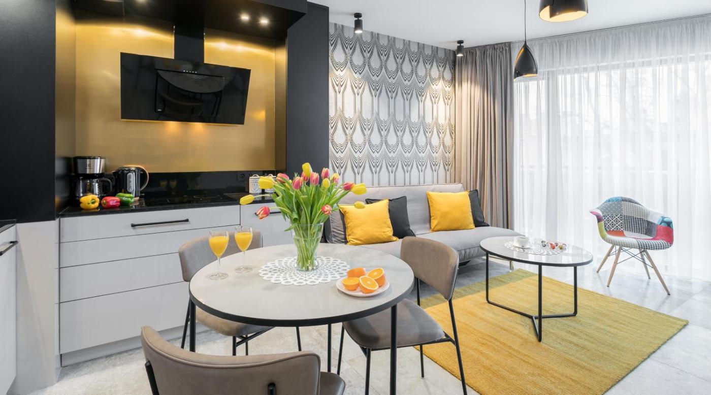Deluxe Queen Studio with Sofa - Rakowicka 6. The studio features a dining area, a wardrobe, as well as a private bathroom featuring a walk-in shower and a hairdryer. The well-fitted kitchen features a stovetop, a refrigerator, a dishwasher and kitchenware. The air-conditioned studio provides a flat-screen TV with satellite channels, a washing machine, a tea and coffee maker, a seating area as well as city views. The unit offers 2 beds. Studio - 4 osobowy. Powierzchnia pokoju ok.: 30 mkw. ;