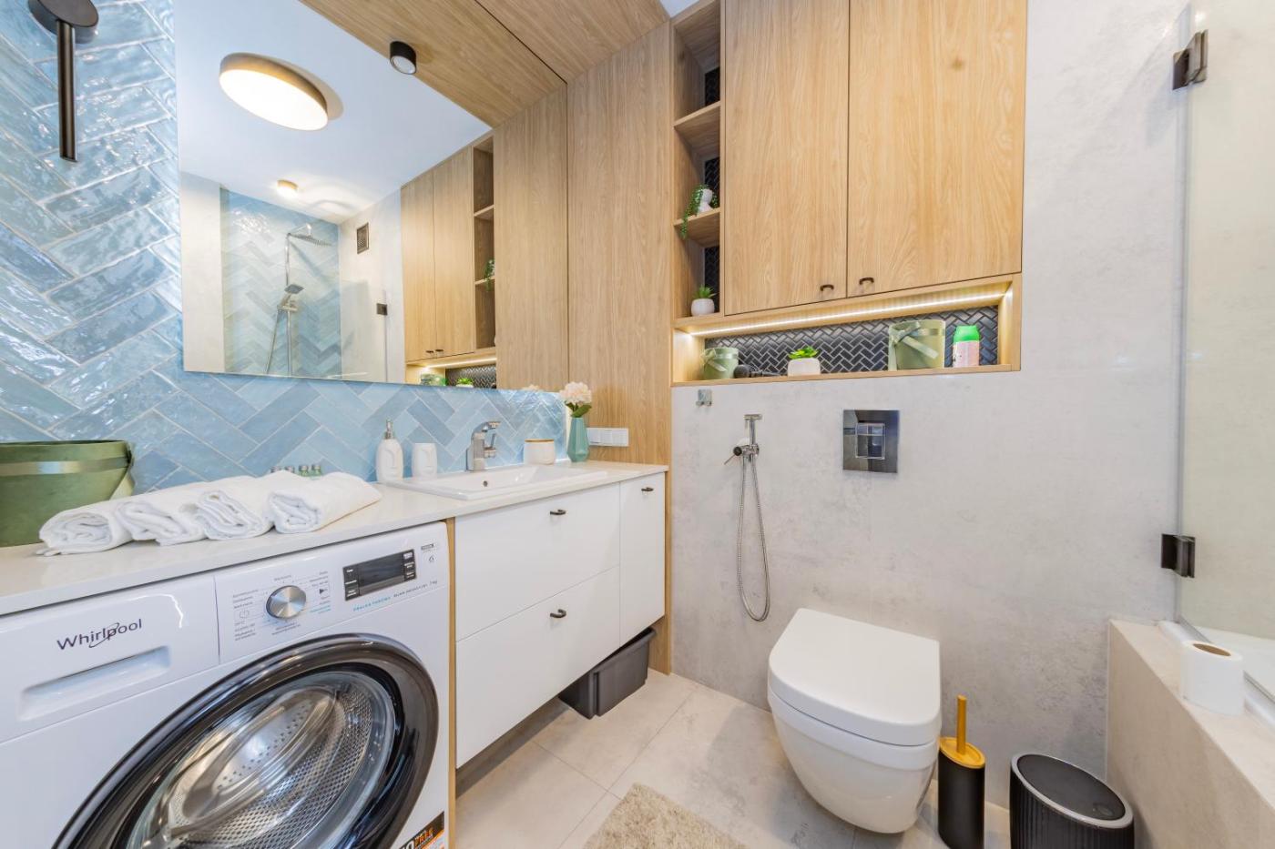 Apartament z 1 sypialnią. Boasting a private entrance, this apartment comes with 1 living room, 1 separate bedroom and 1 bathroom with a bath and a shower. In the well-equipped kitchenette, guests will find a stovetop, a refrigerator, a dishwasher and kitchenware. This apartment has a washing machine, a tea and coffee maker, flat-screen TV with streaming services, as well as chocolate for guests. The unit has 2 beds. Apartament - 4 osobowy. Powierzchnia pokoju ok.: 54 mkw.