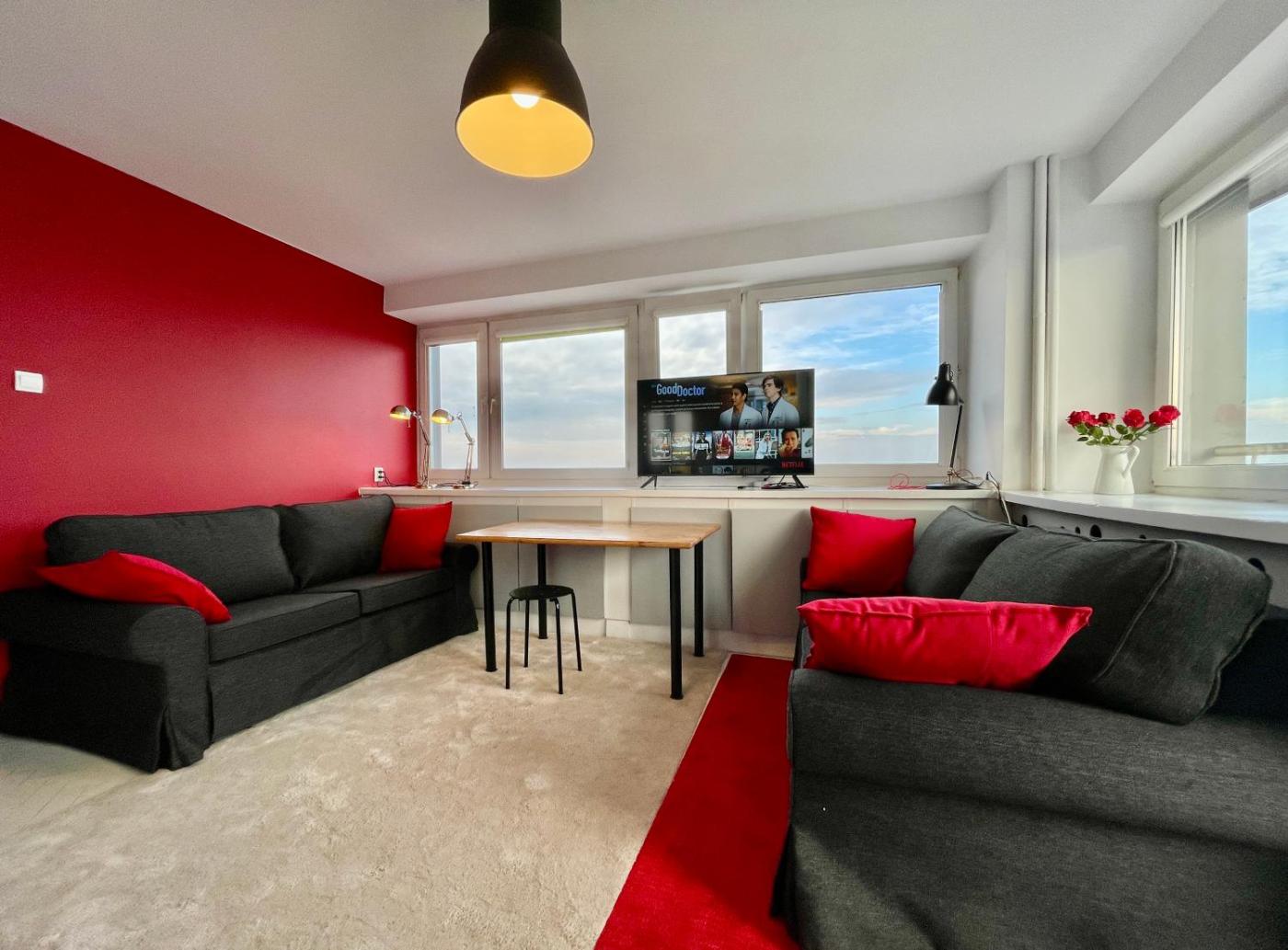 Apartament z 2 sypialniami. This apartment is comprised of 2 bedrooms, a kitchen and 1 bathroom with a shower and a hairdryer. Meals can be prepared in the kitchen, which is fitted with a stovetop, a refrigerator, kitchenware and a microwave. Featuring a balcony with city views, this apartment also offers a washing machine and a flat-screen TV with streaming services. The unit offers 2 beds. Apartament - 4 osobowy. Powierzchnia pokoju ok.: 34 mkw.